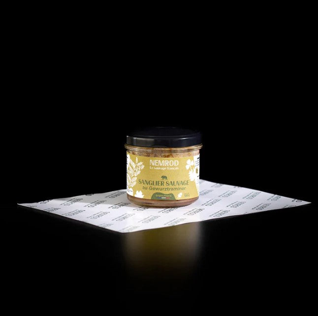 Un peu de douceur dans ce monde de brutes ! Cette étonnante terrine à base de sanglier sauvage, agrémentée au Gewurztraminer (vin blanc moelleux d'Alsace), vous surprendra par son côté sucré/salé.