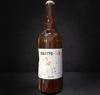 More tangy than a blonde, white beer is distinguished by its slightly milky appearance and its mellow taste . The Gratte-Cul Acidulated and Fruity Beer perfectly meets these criteria, while guaranteeing quality thanks to the use of ingredients mainly from Ardèche: