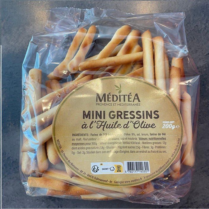 Discover our delicious mini olive oil breadsticks, a perfect snack for olive oil lovers. Made with premium olive oil, these breadsticks have a delicate flavor and a crispy texture, to satisfy any snacking craving. Enjoy a healthy and authentic snack with our mini olive oil breadsticks.