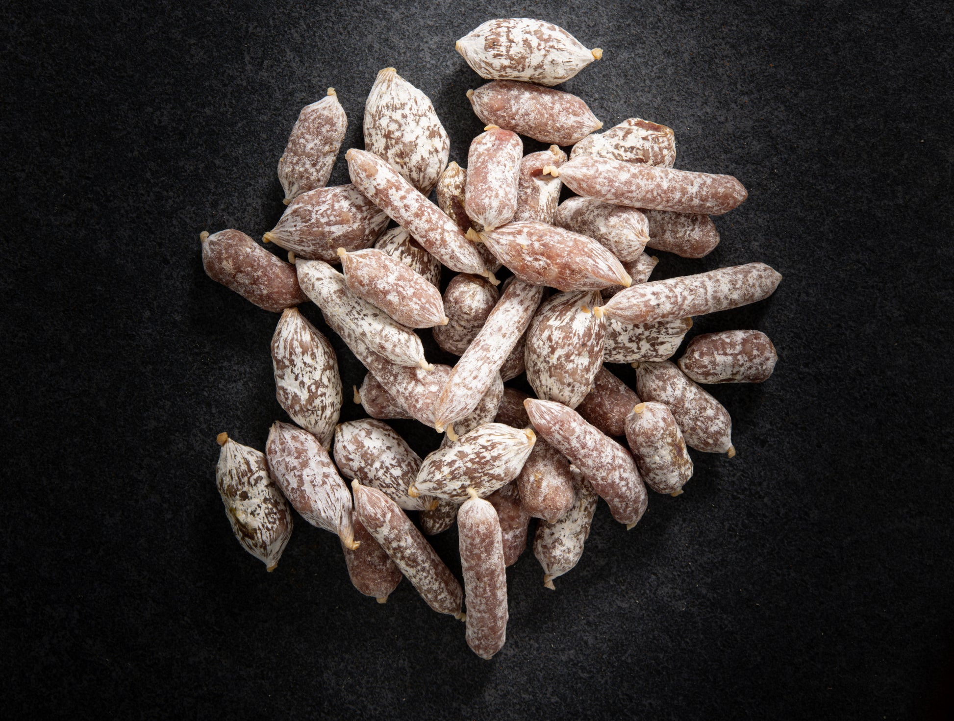 Nos mini saucissons sont élaborés à partir de viande de porc française et affinés lentement pour révéler toutes leurs saveurs.