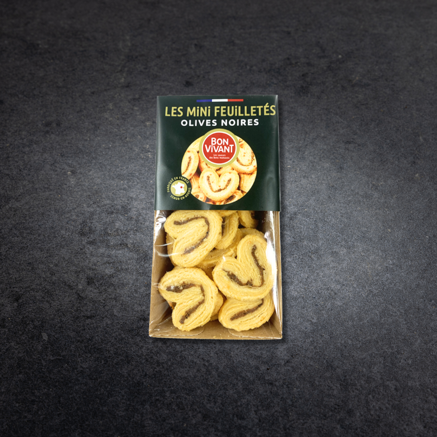 Laissez-vous séduire par l’intensité des olives noires dans une version apéritive croustillante et raffinée avec nos feuilletés palmiers aux olives noires. Leur forme élégante et leur goût généreux en font des incontournables pour vos moments de partage.