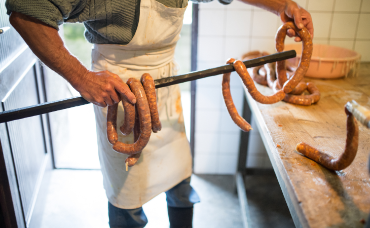 With these carefully selected ingredients, our master butchers prepare the sausages based on the Ardèche tradition. All the work is done by humans, from selecting the pieces to preparing the mixture and monitoring the chopping.