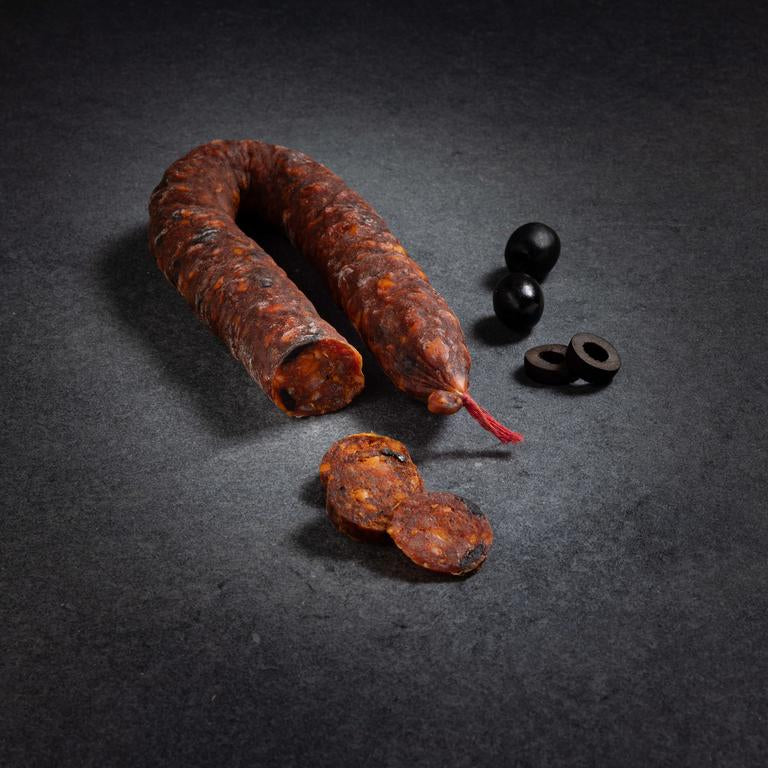 agréable les olives noires avec le chorizo, bon mariage des produits
